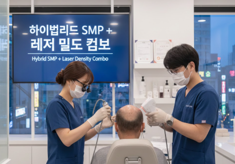 Treatment Overview Hybrid SMP + Laser Density Combo in Korea is an advanced hair restoration solution that combines scalp micropigmentation (SMP) with low-level laser therapy