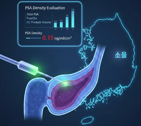 In Korea, PSA density is calculated using transrectal ultrasound (TRUS), MRI, or 3D prostate imaging combined with precise PSA blood tests, offering reliable results for both local and international patients.